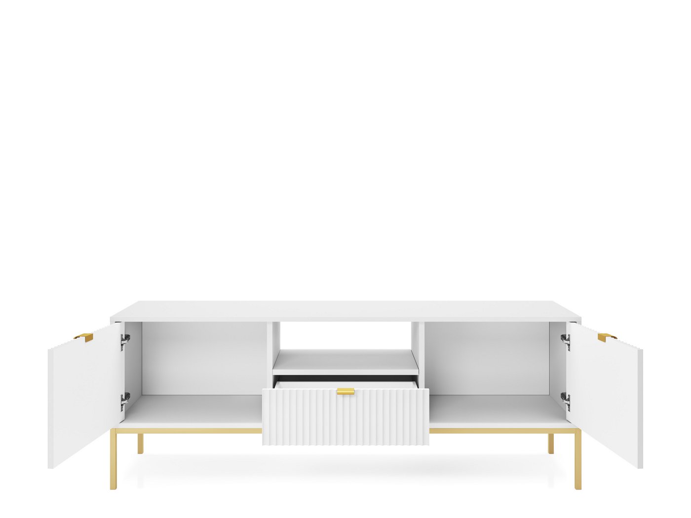 Тумба під телевізор Perfect Home Нова / Nova 2-дверна з 1 шухлядою і золотими ніжками RTV154 Білий