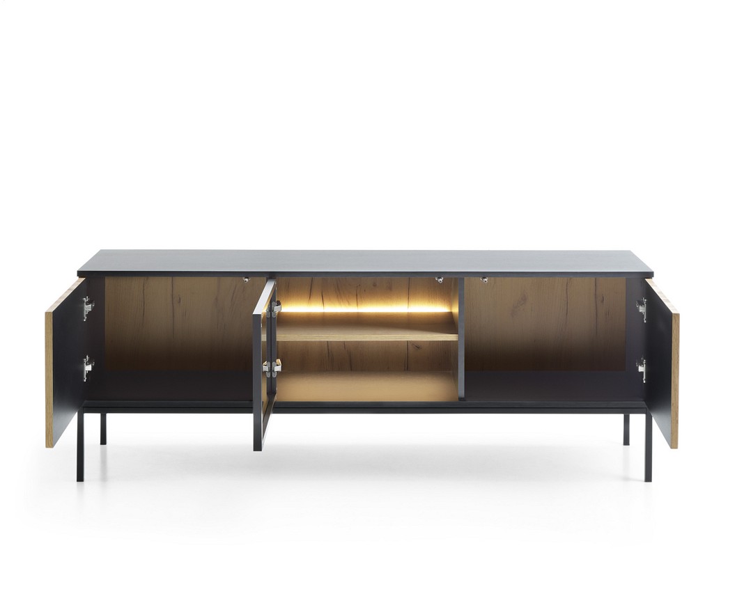 Тумба під ТВ з підсвіткою Perfect Home Сенто / Sento RTV154 3-дверна Чорний/дуб вотан