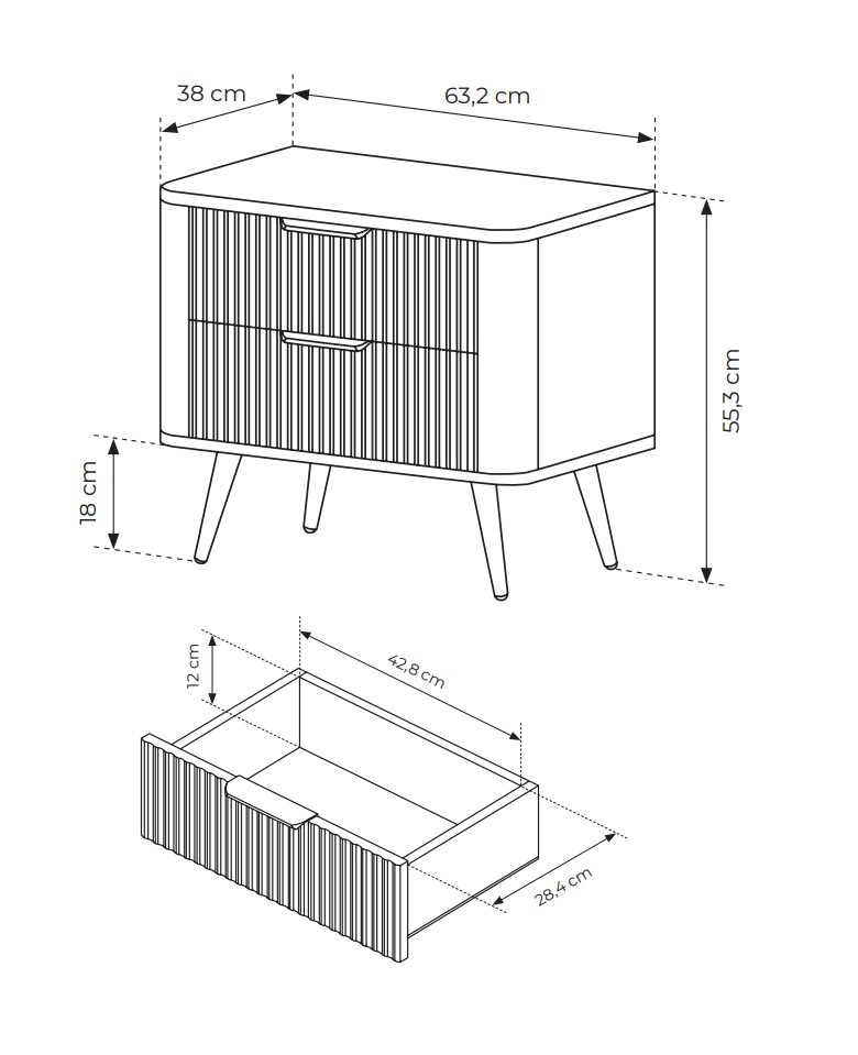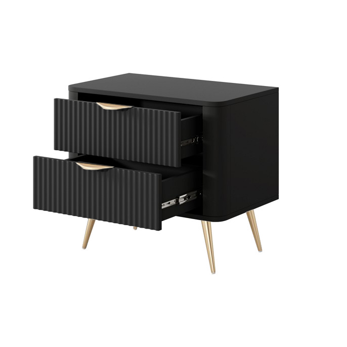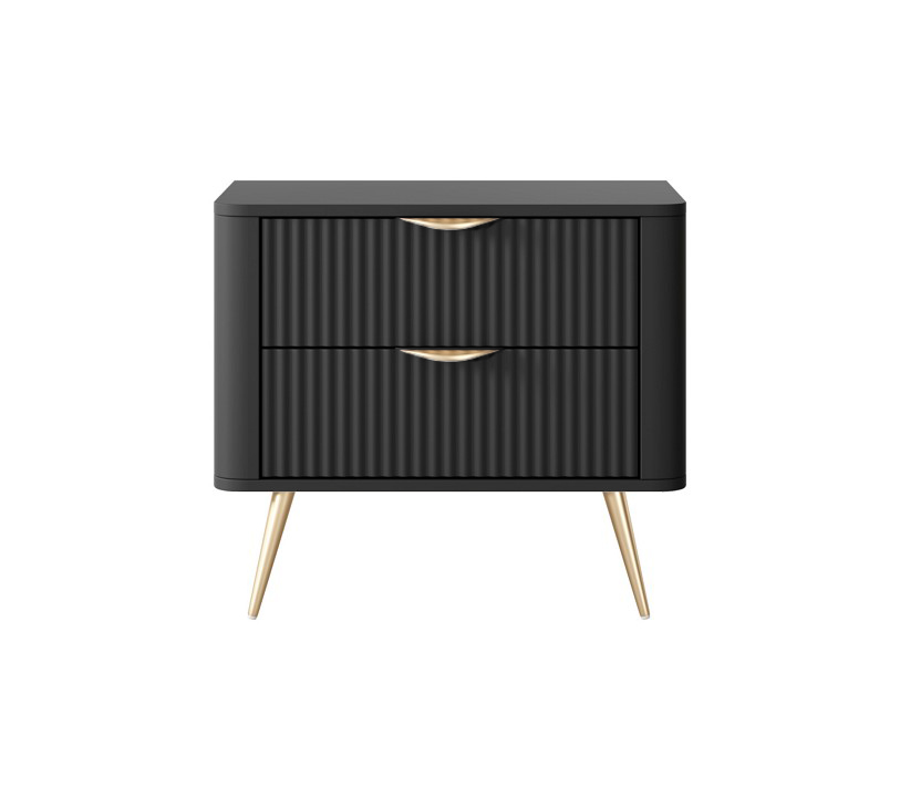 Тумба приліжкова Perfect Home Ланте / Lante з 2 шухлядами і золотими ніжками 2S Чорний