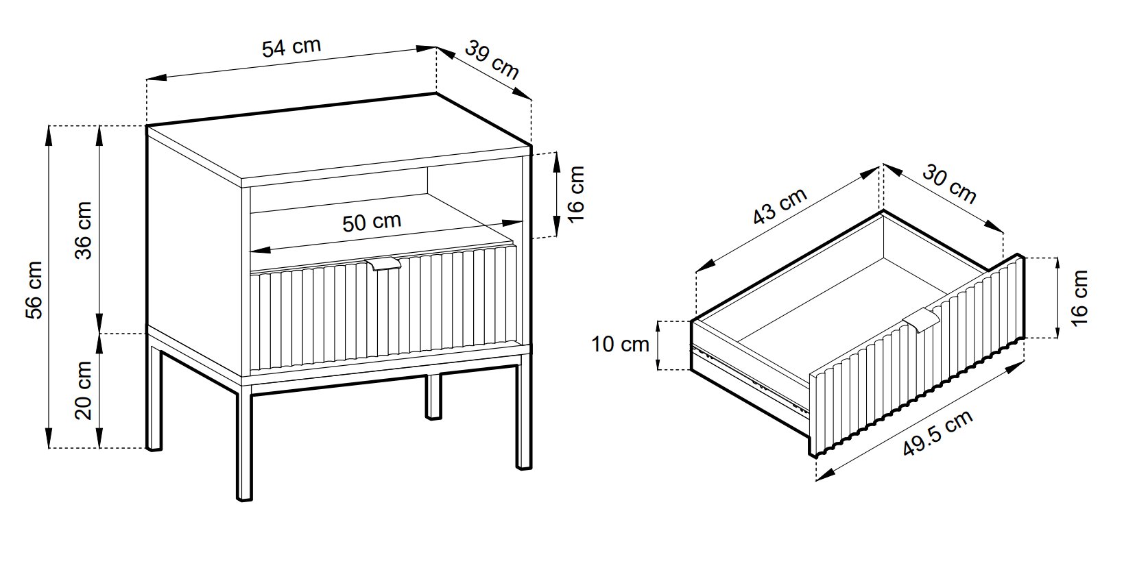 Стелаж Perfect Home Ланте / Lante 2S з 2 шухлядами і чорними ніжками Чорний
