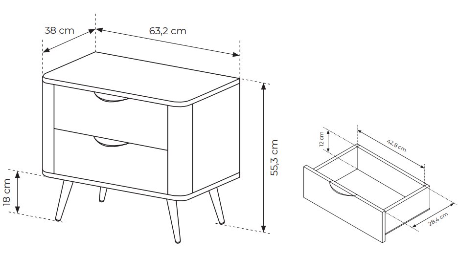Тумба приліжкова Perfect Home Таво / Tavo 2S/53 з 2 шухлядами Дуб кремона