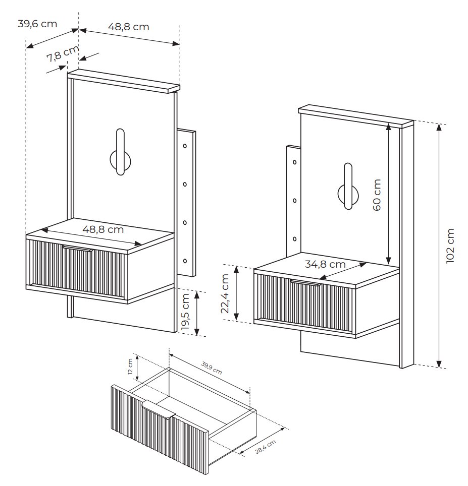 Тумба приліжкова з підсвіткою Perfect Home Сенто / Sento S54 з 1 шухлядою Чорний/дуб вотан