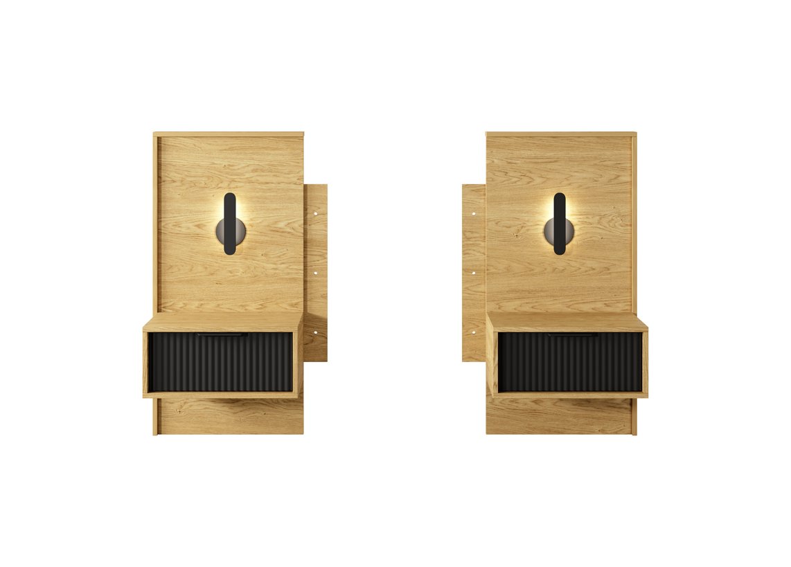 Зображення з  Тумби приліжкові 2 шт. Perfect Home Балтик / Baltic 1S/49 з 1 шухлядою та підсвіткою Дуб балтик/чорний