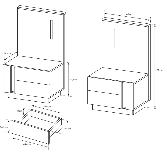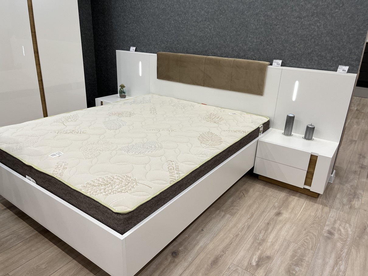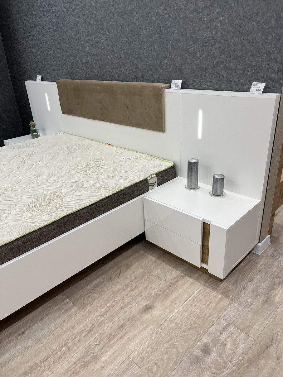 У вартість ліжка входять дві тумби Arco 2S/60 Perfect Home Польща, які оснащені освітленням та двома місткими висувними шухлядами. Звертає на себе увагу їхня висота, яка є продовженням висоти узголів'я ліжка Marco, створюючи з ним єдине ціле. Тумби та інші меблі з однойменного спального гарнітура поставляються в розібраному вигляді з  інструкцією по збірці. Сучасна кольорова гама фасадів і розміщення елементів на цоколях підкреслюють їх сучасний, мінімалістичний характер. Меблі виготовлені досить якісно. Меблі також доступні в кольорі дуб артизан/графіт.