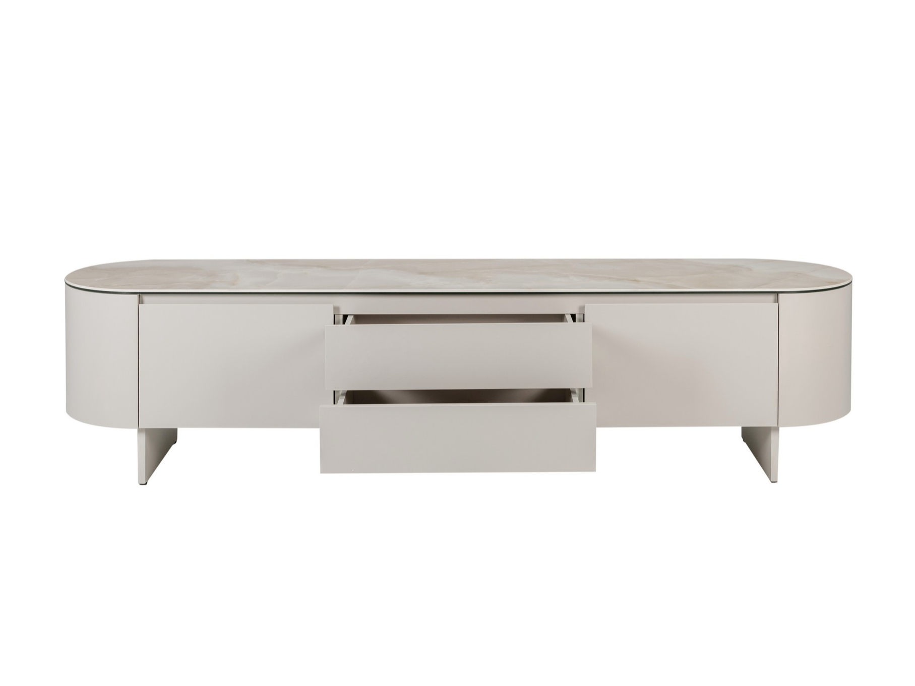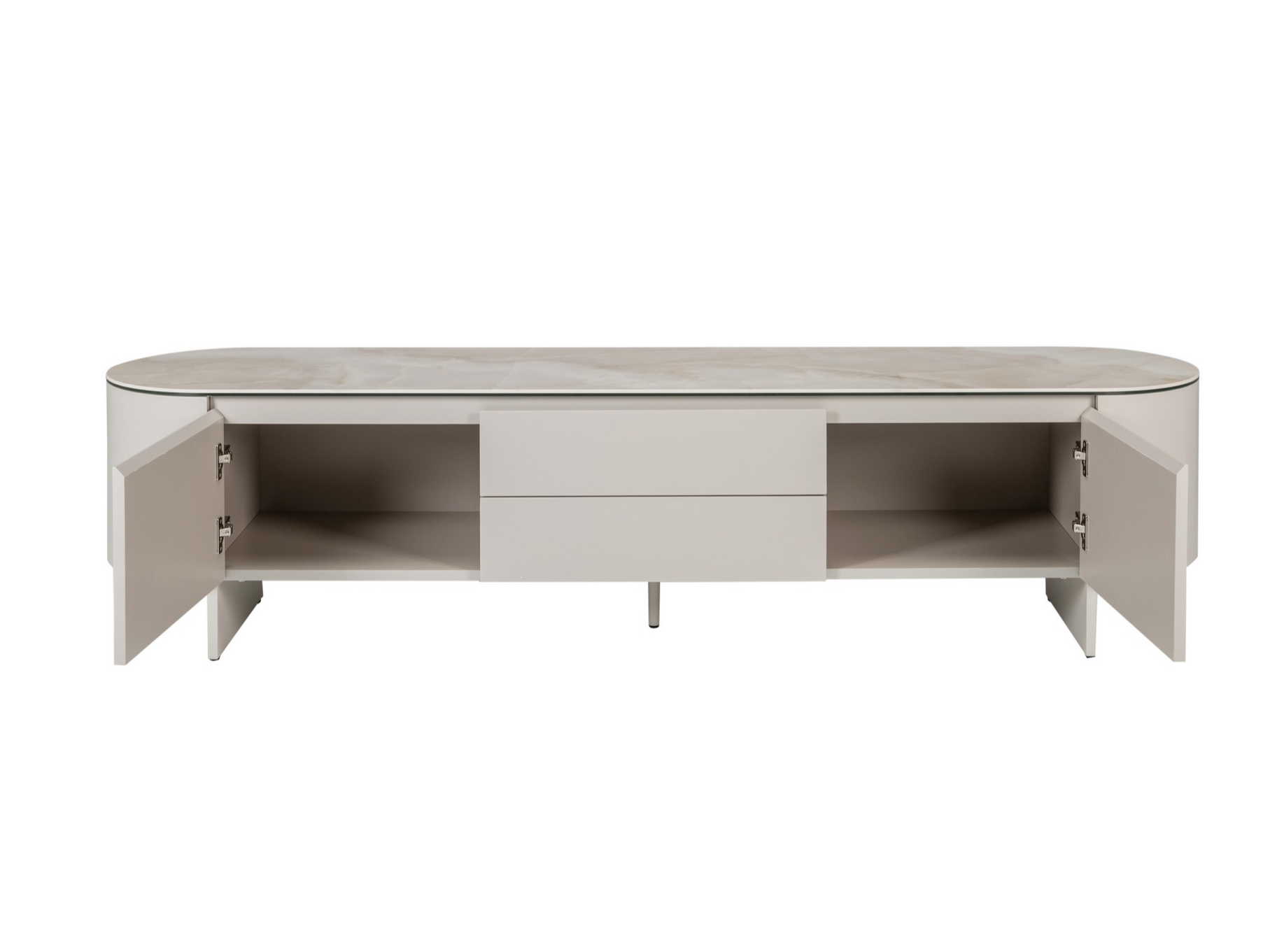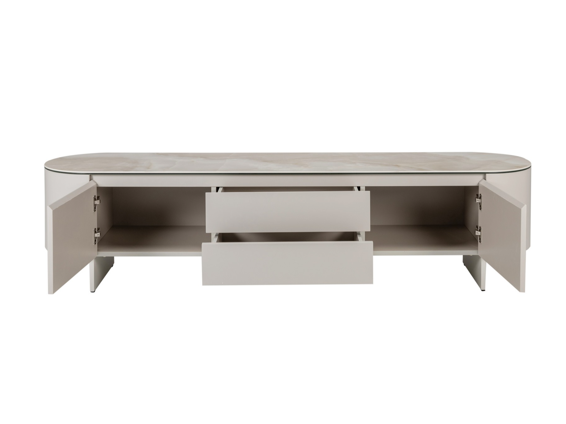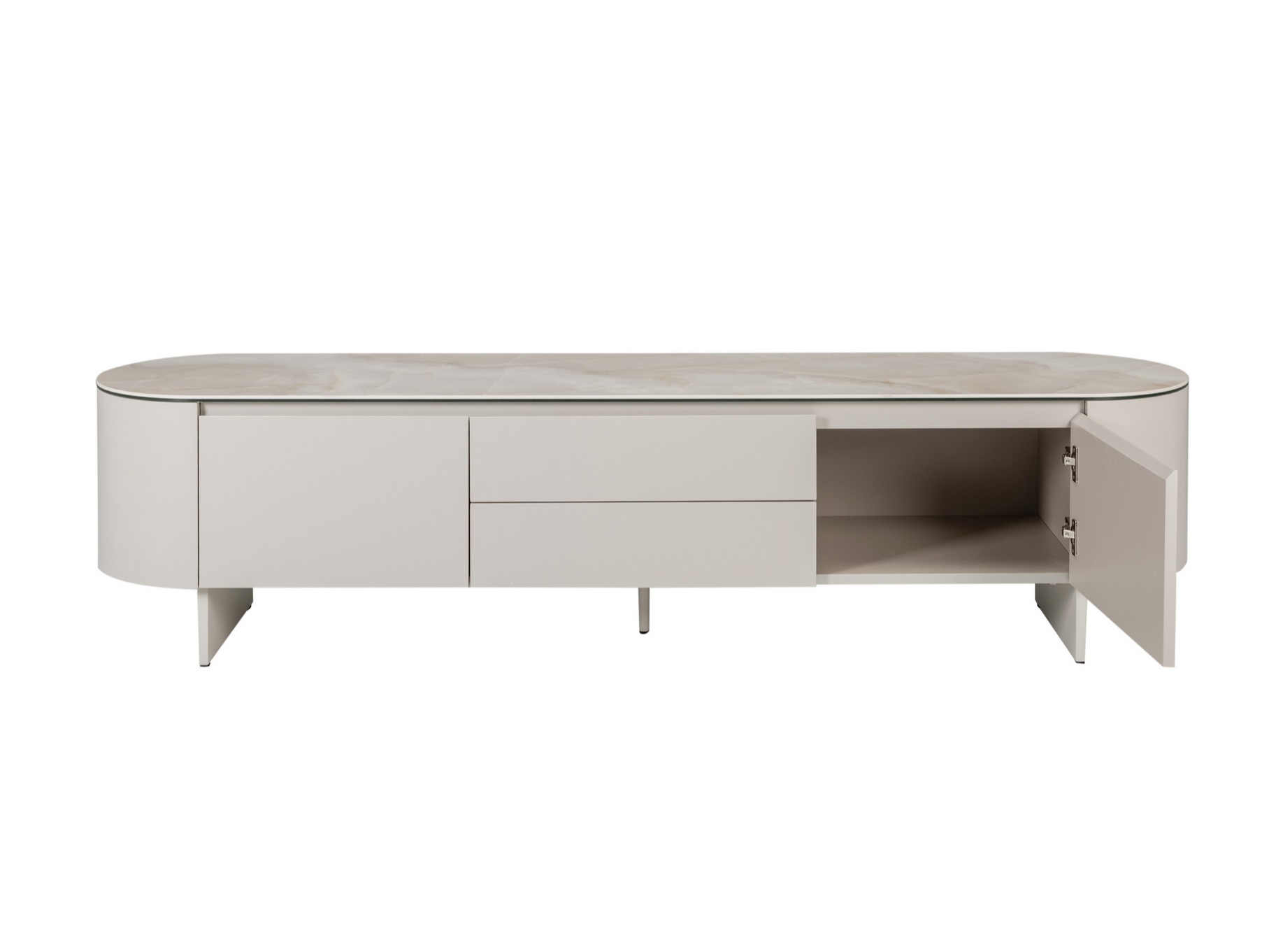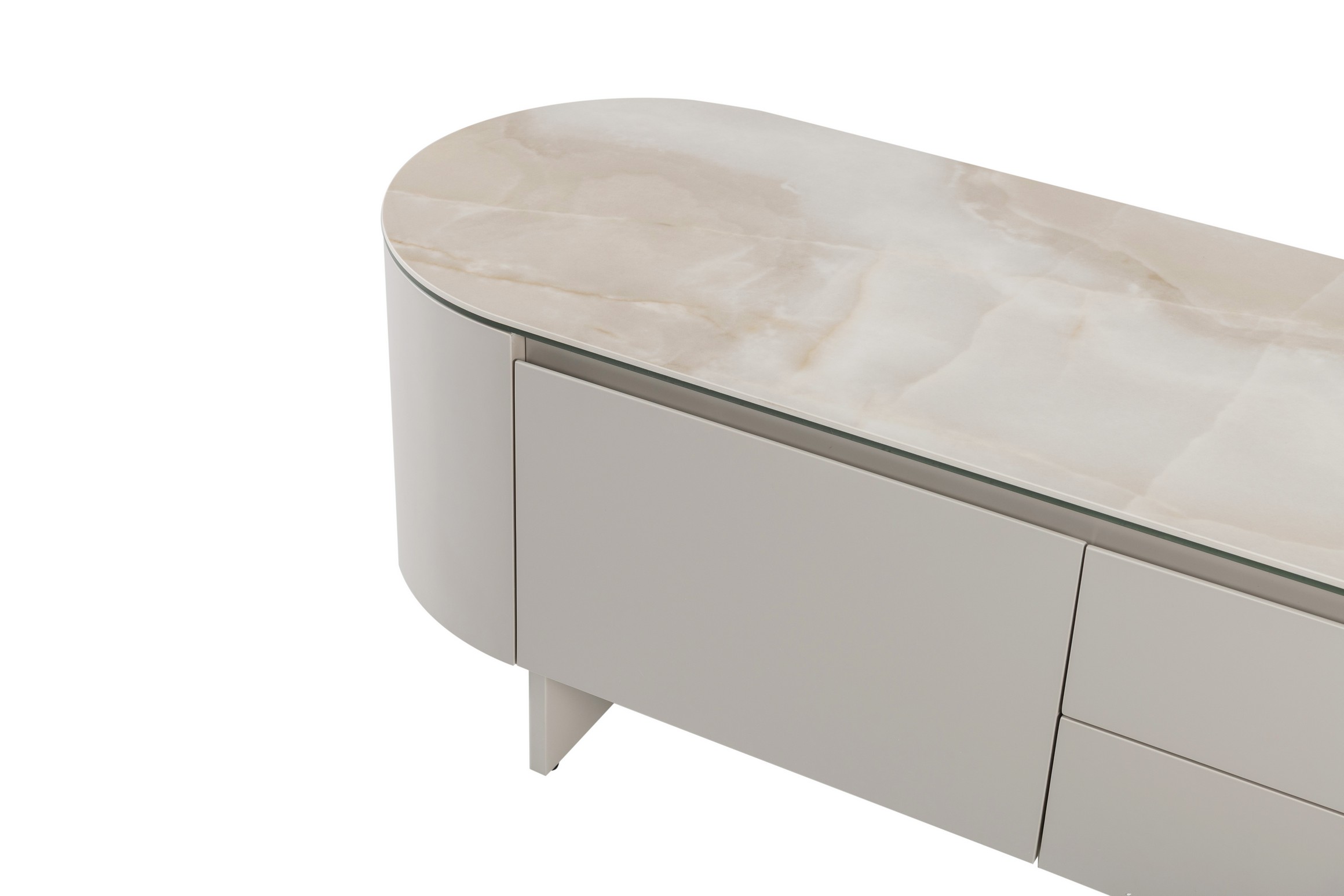 ТВ-тумба “Лунаріо” айворі онікс + айворі — це елегантне поєднання сучасного дизайну, витончених форм і благородних матеріалів. Вона створена для інтер’єрів, де кожна деталь має значення, а стиль проявляється у стриманій розкоші.