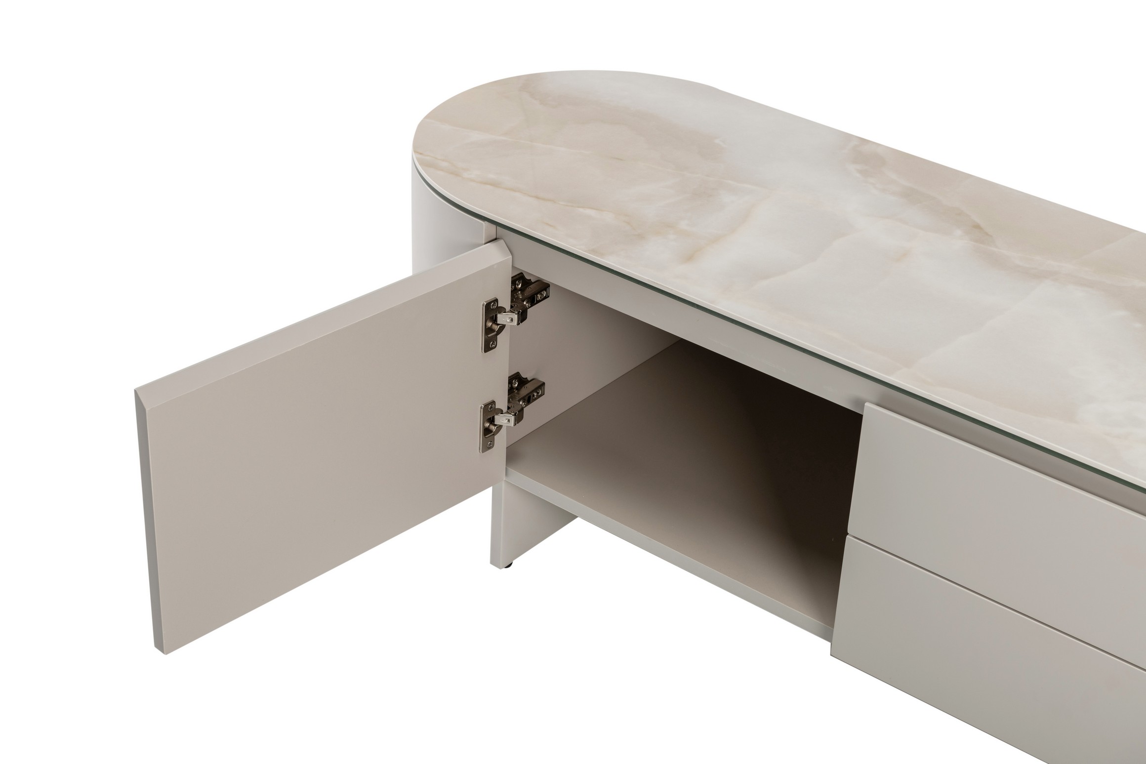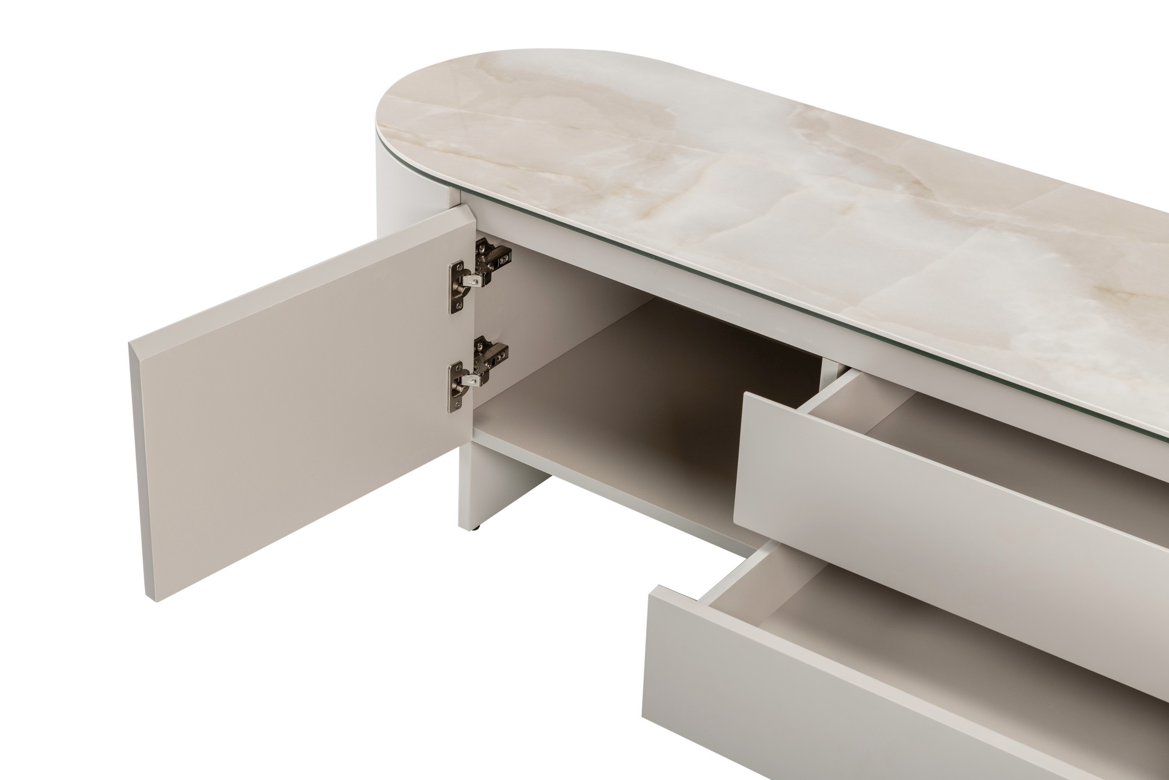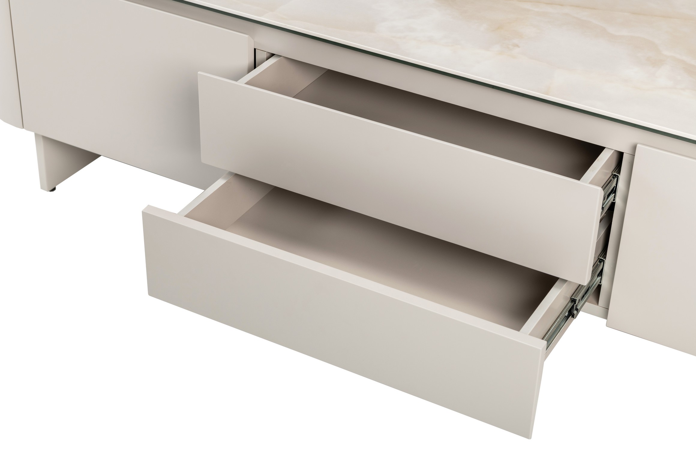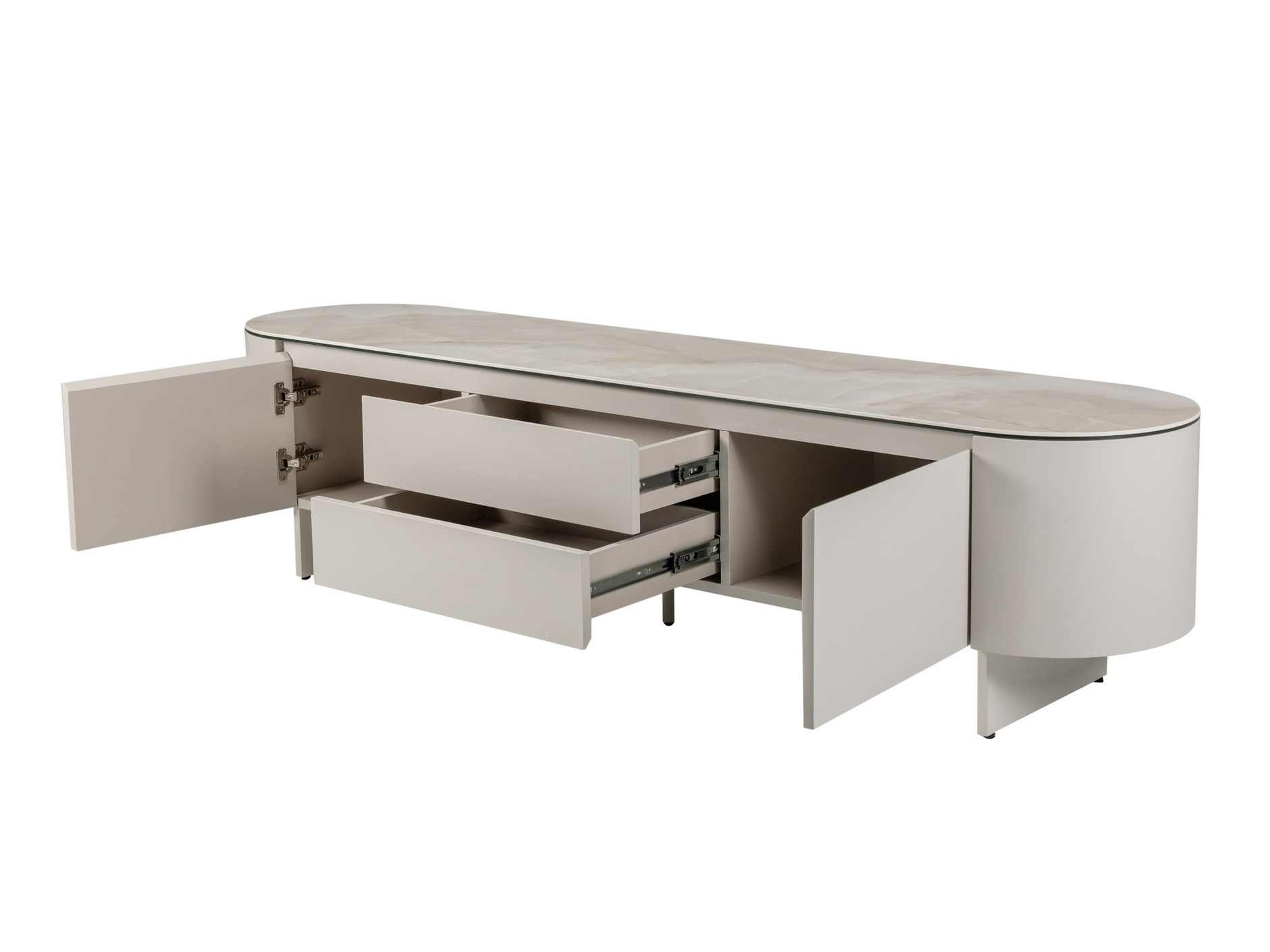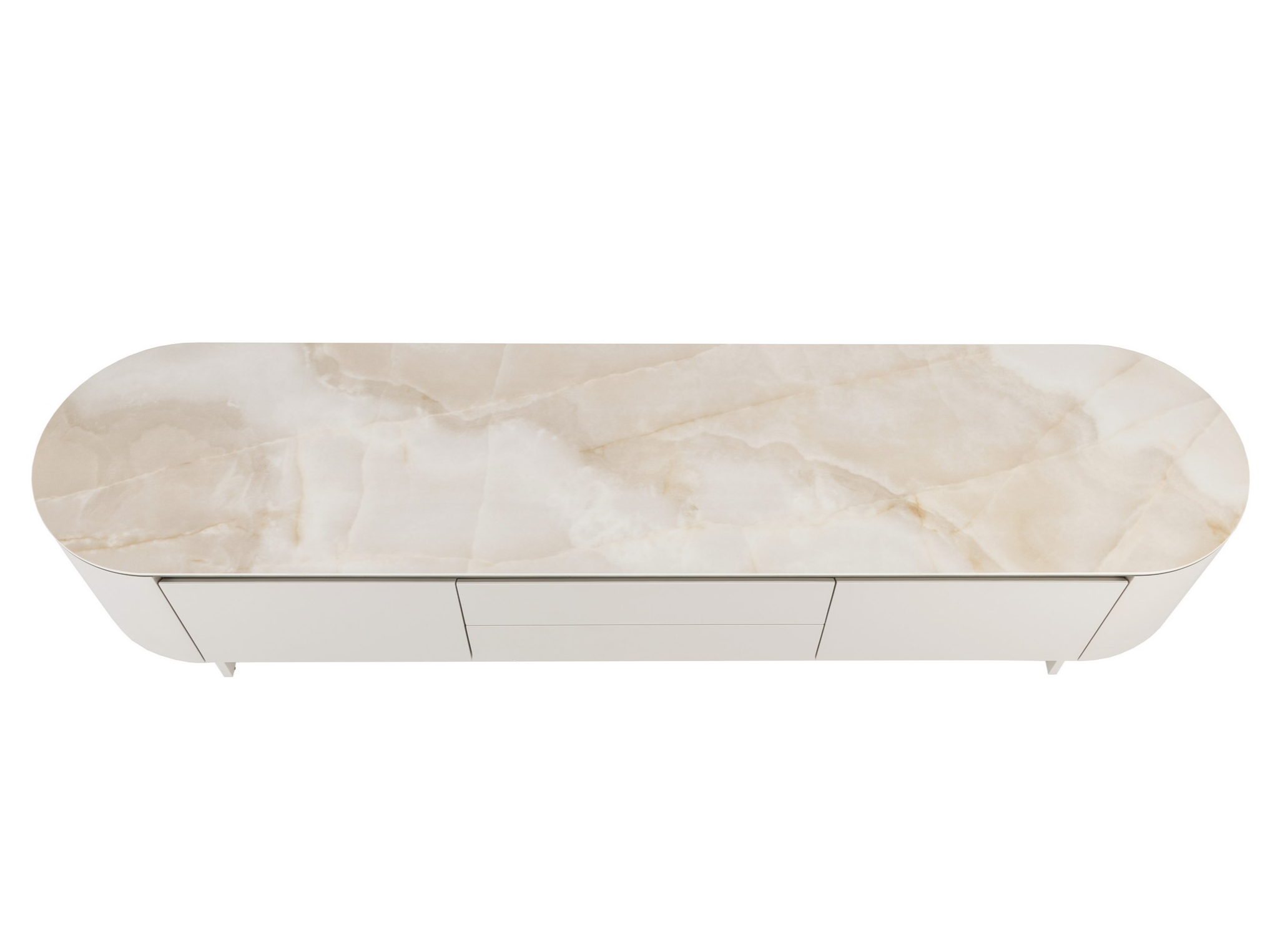 ТВ-тумба “Лунаріо” айворі онікс + айворі — це елегантне поєднання сучасного дизайну, витончених форм і благородних матеріалів. Вона створена для інтер’єрів, де кожна деталь має значення, а стиль проявляється у стриманій розкоші.