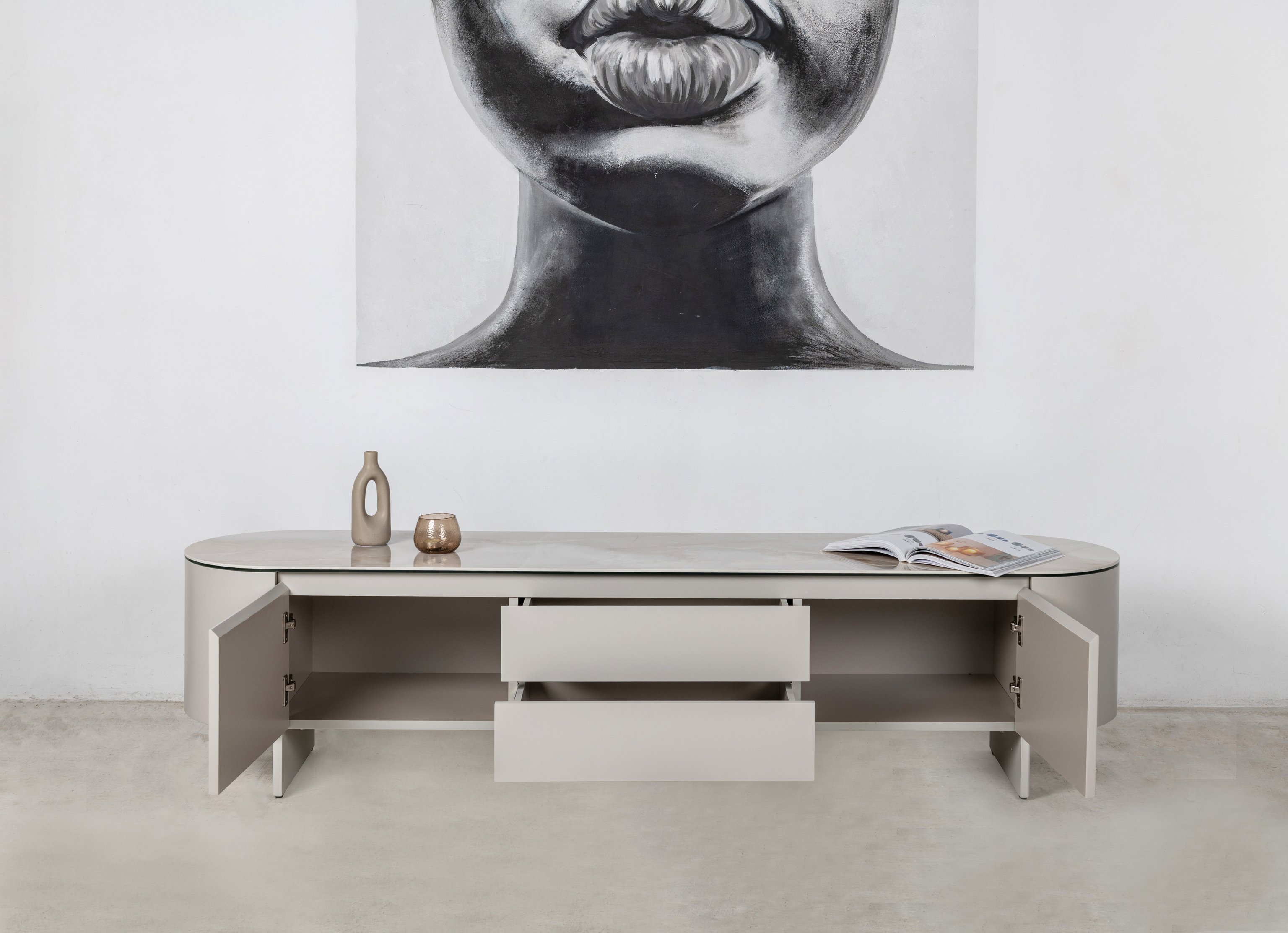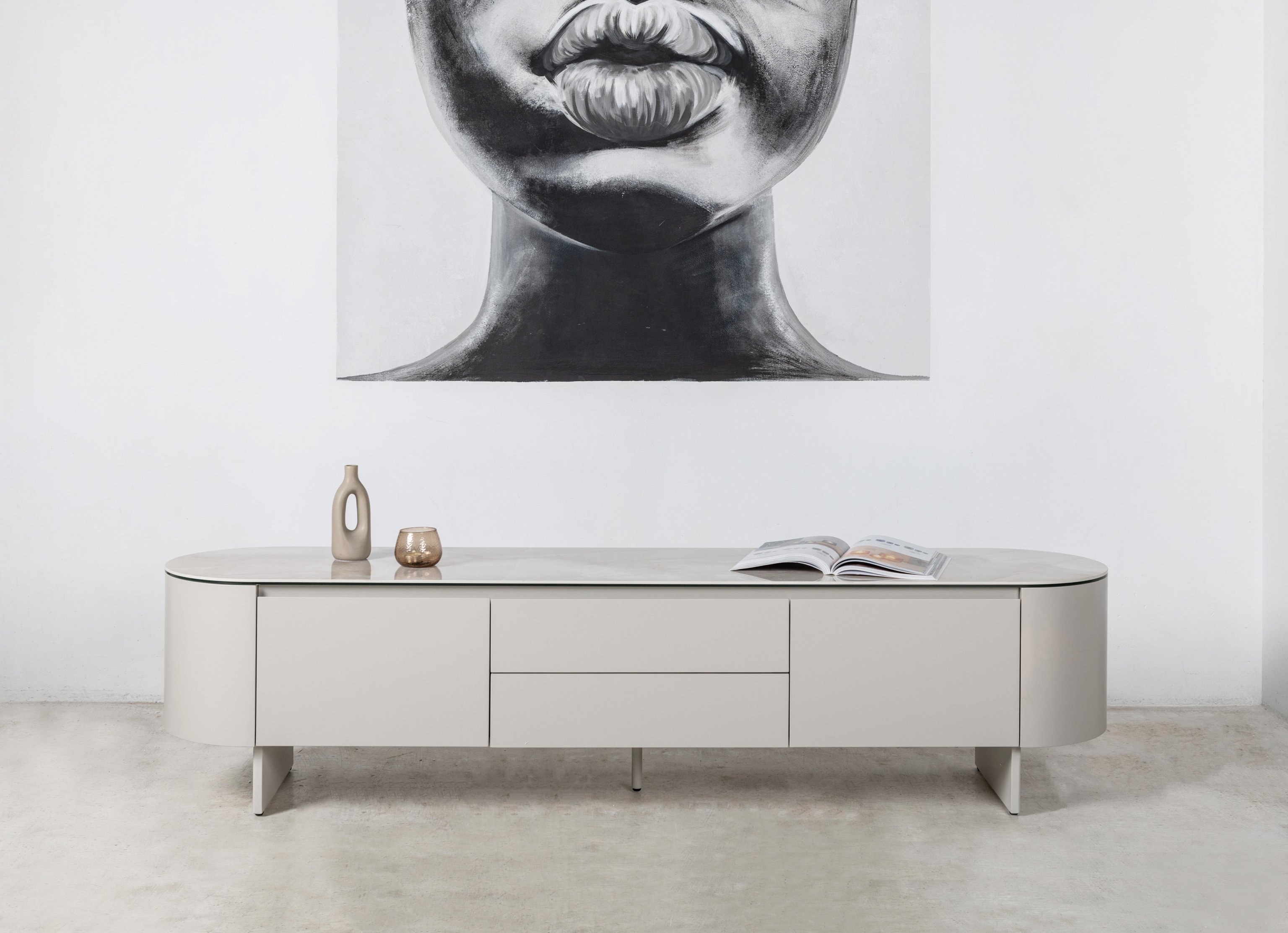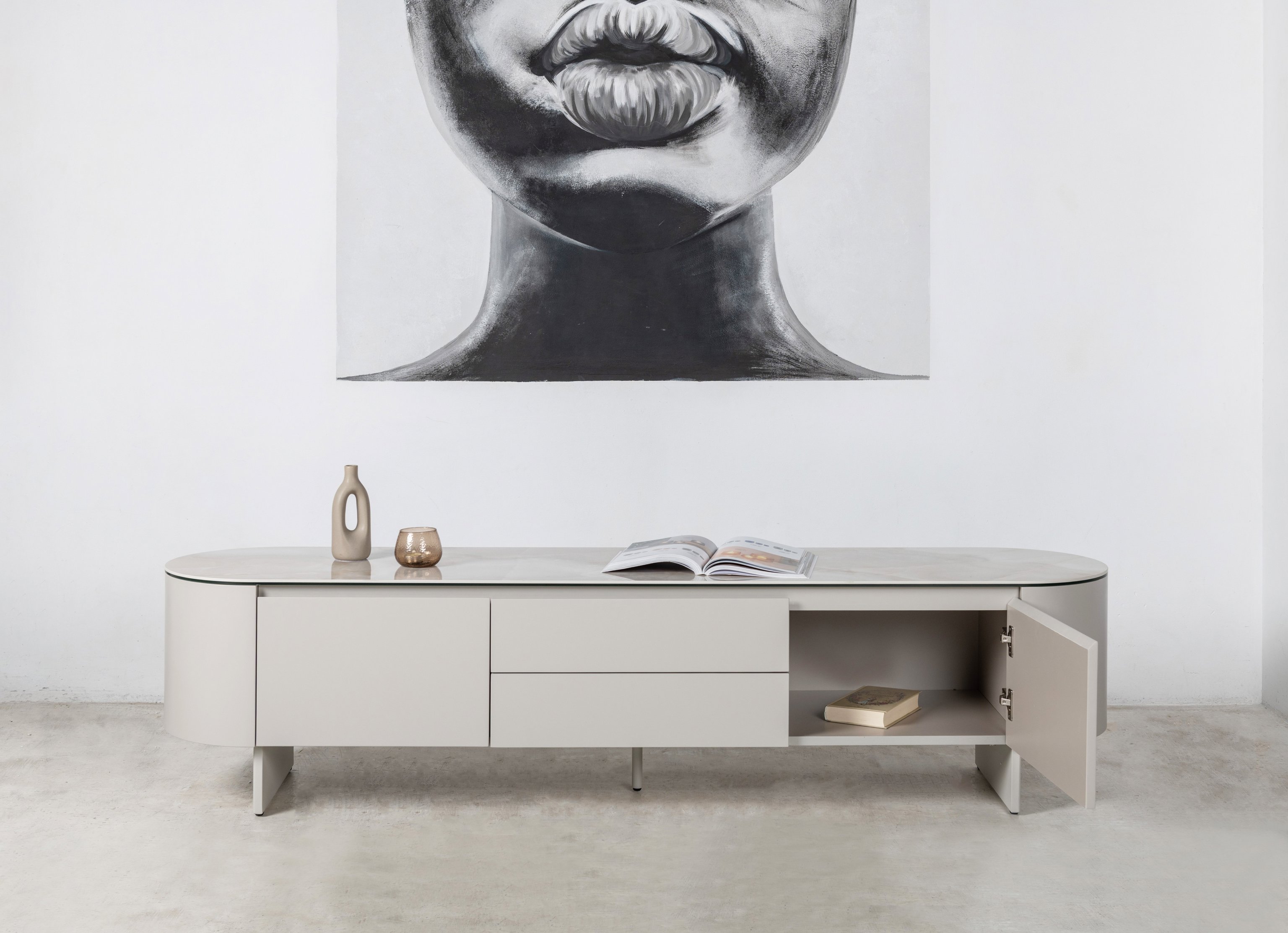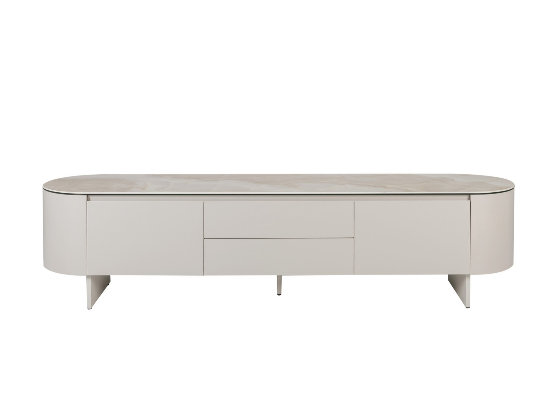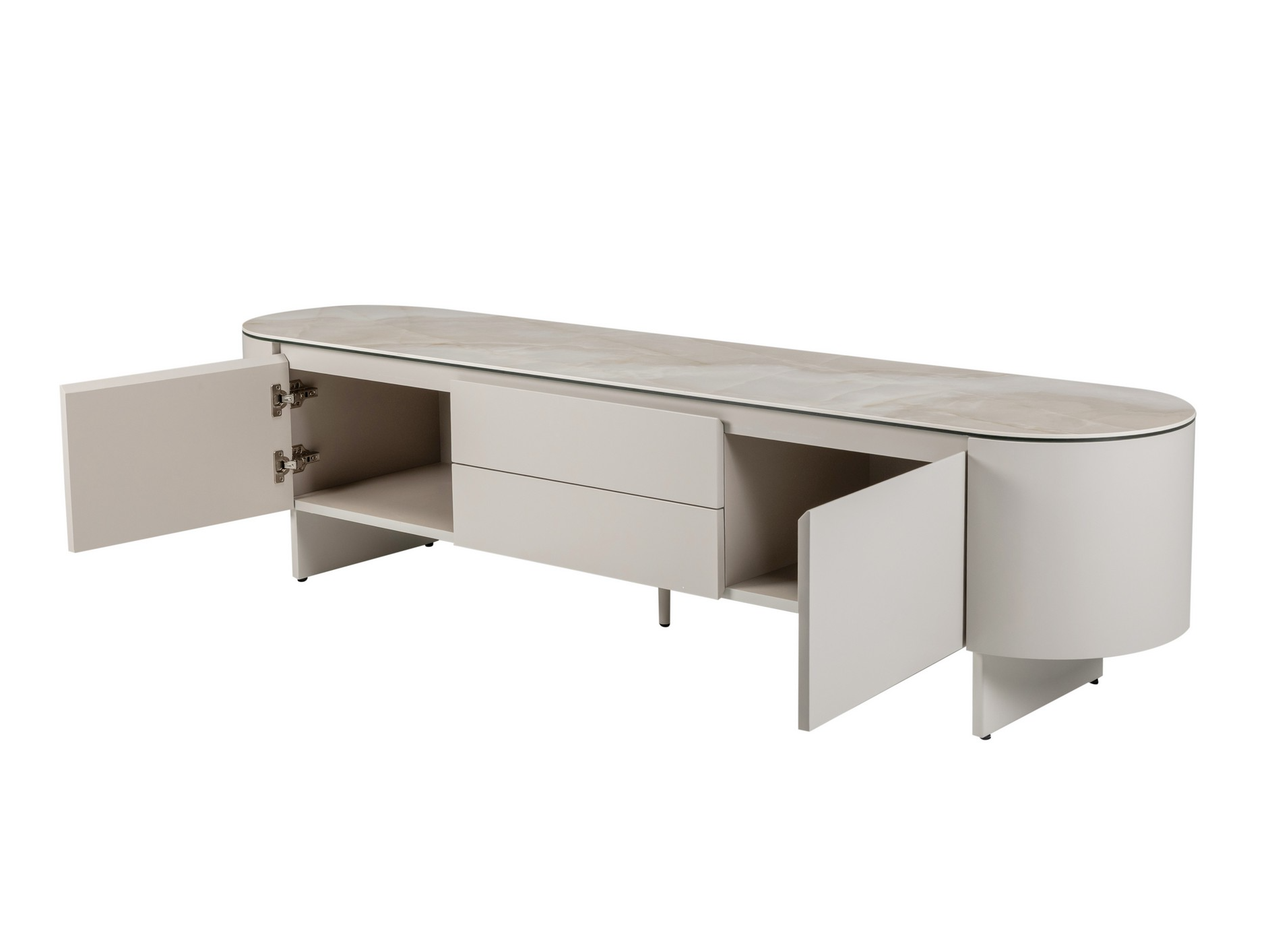 ТВ-тумба “Лунаріо” айворі онікс + айворі — це елегантне поєднання сучасного дизайну, витончених форм і благородних матеріалів. Вона створена для інтер’єрів, де кожна деталь має значення, а стиль проявляється у стриманій розкоші.