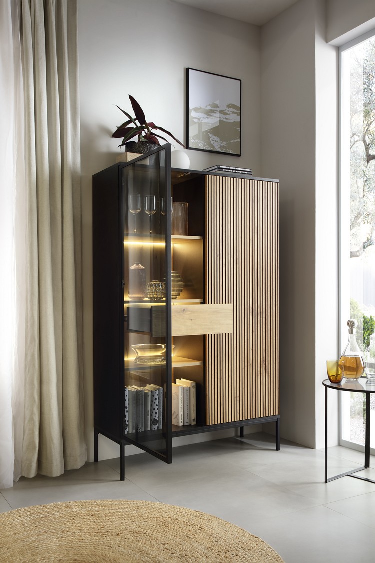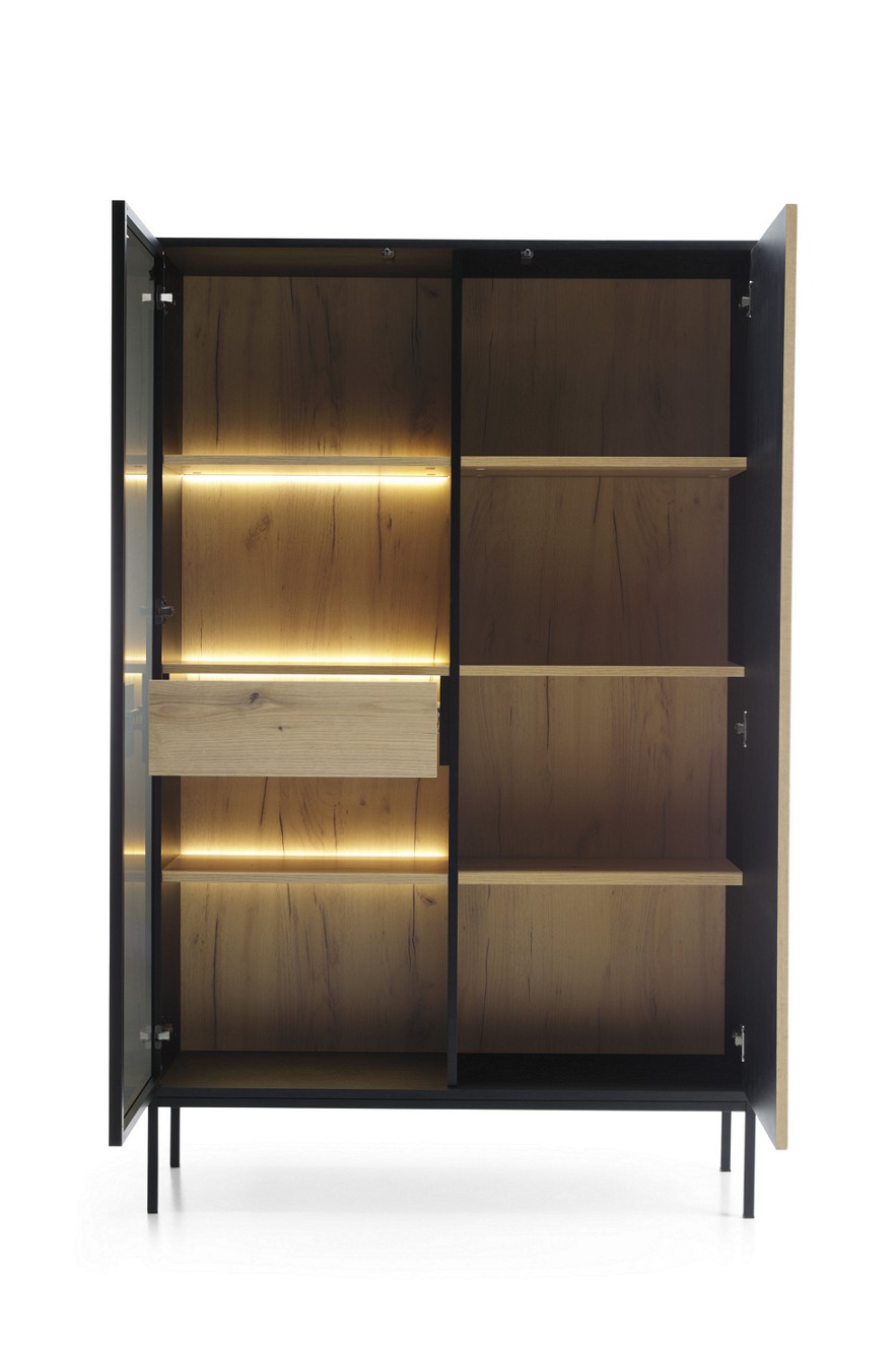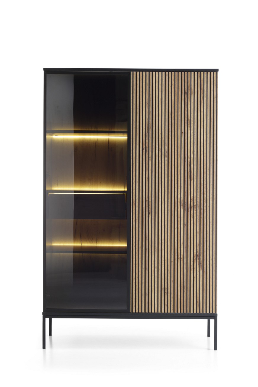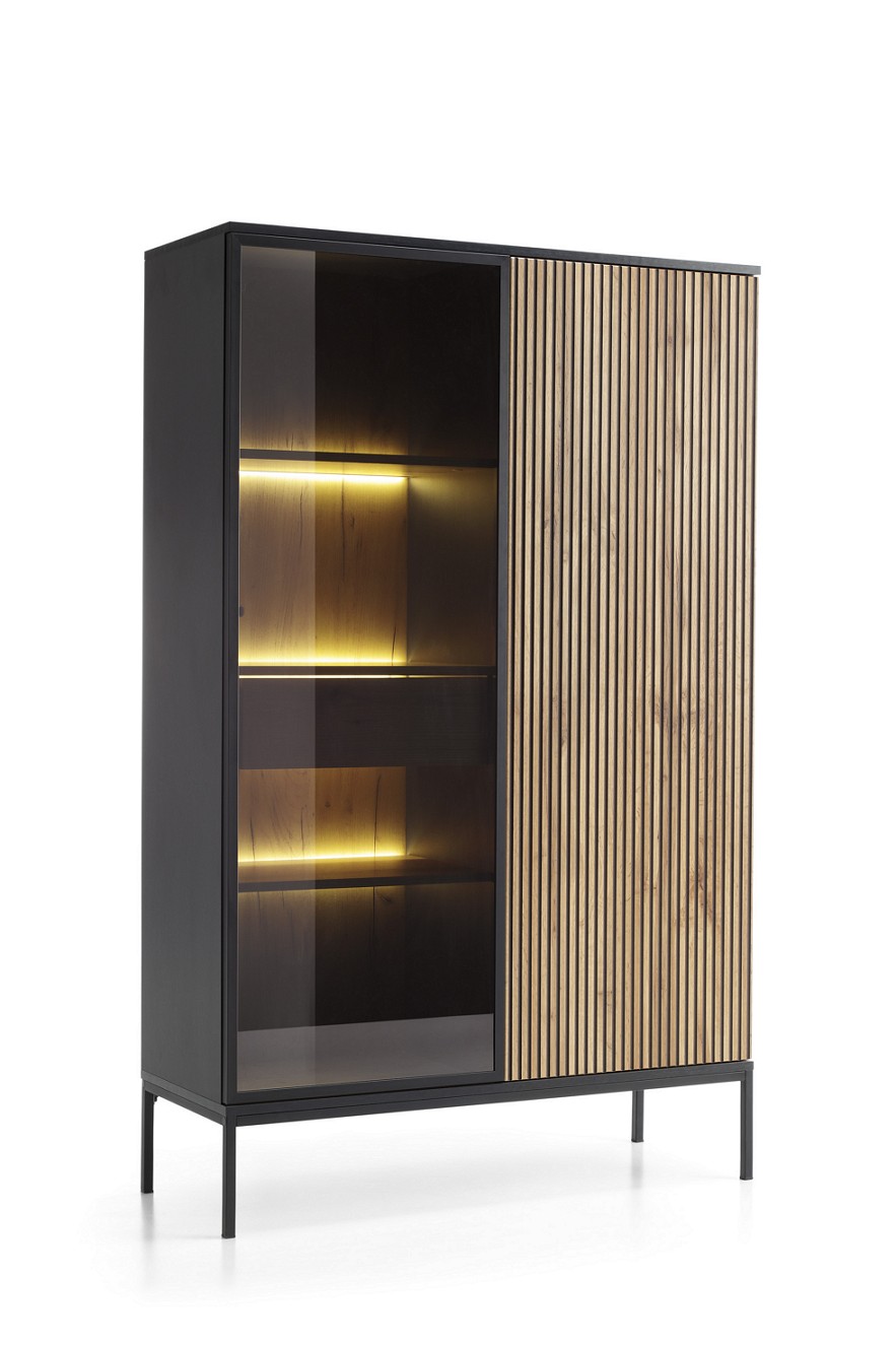 Зображення з  Вітрина висока з підсвіткою Perfect Home Сенто / Sento WTSZ104 2-дверна Чорний/дуб вотан